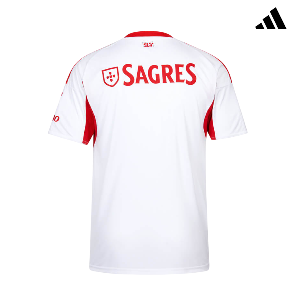 A Camisola Alternativa Branca do SL Benfica 2025-2026 transporta-nos de volta para a época 2015-2016, onde ícones do Glorioso como Nico Gaitán, Jonas ou Luisão nos levaram ao Tricampeonato, que fugia há 39 anos.