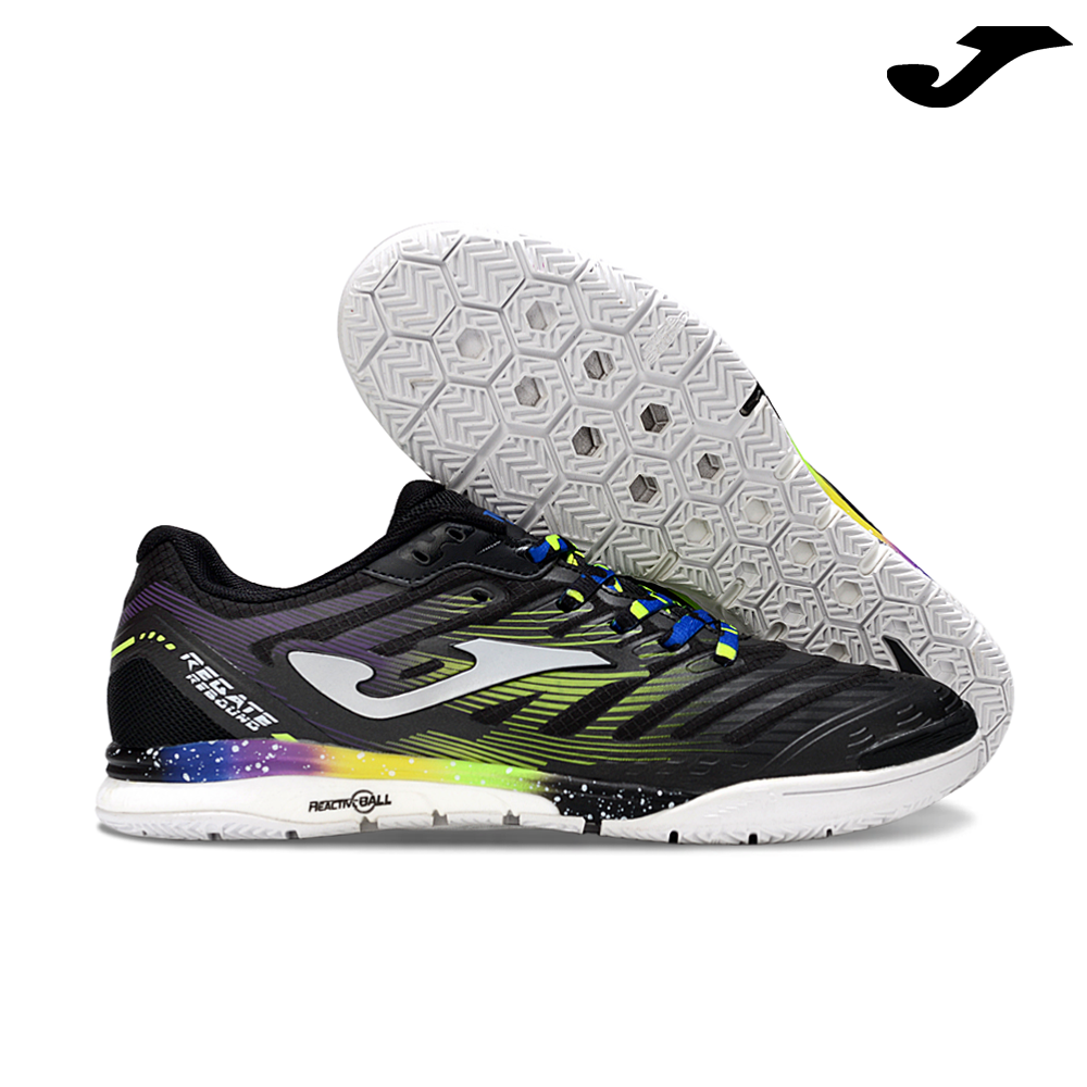 As sapatilhas de futsal Joma Regate Rebound são a escolha ideal para quem joga tanto em pistas de interiores (indoor) como em superfícies pouco abrasivas (outdoor). Confeccionadas em micro-fibra e nylon, utilizam o sistema Injection Print que garante ultra-leveza, respirabilidade e resistência. As inserções de borracha na parte inferior facilitam o controlo da bola e o remate, enquanto o reforço plástico na zona da biqueira proporciona maior proteção. Fabricadas com Phylon de duas densidades, onde a camada superior é mais firme para dar estabilidade e a inferior utiliza a tecnologia Rebound 2.0, as Joma Regate Rebound oferecem excelente amortecimento e suporte.
