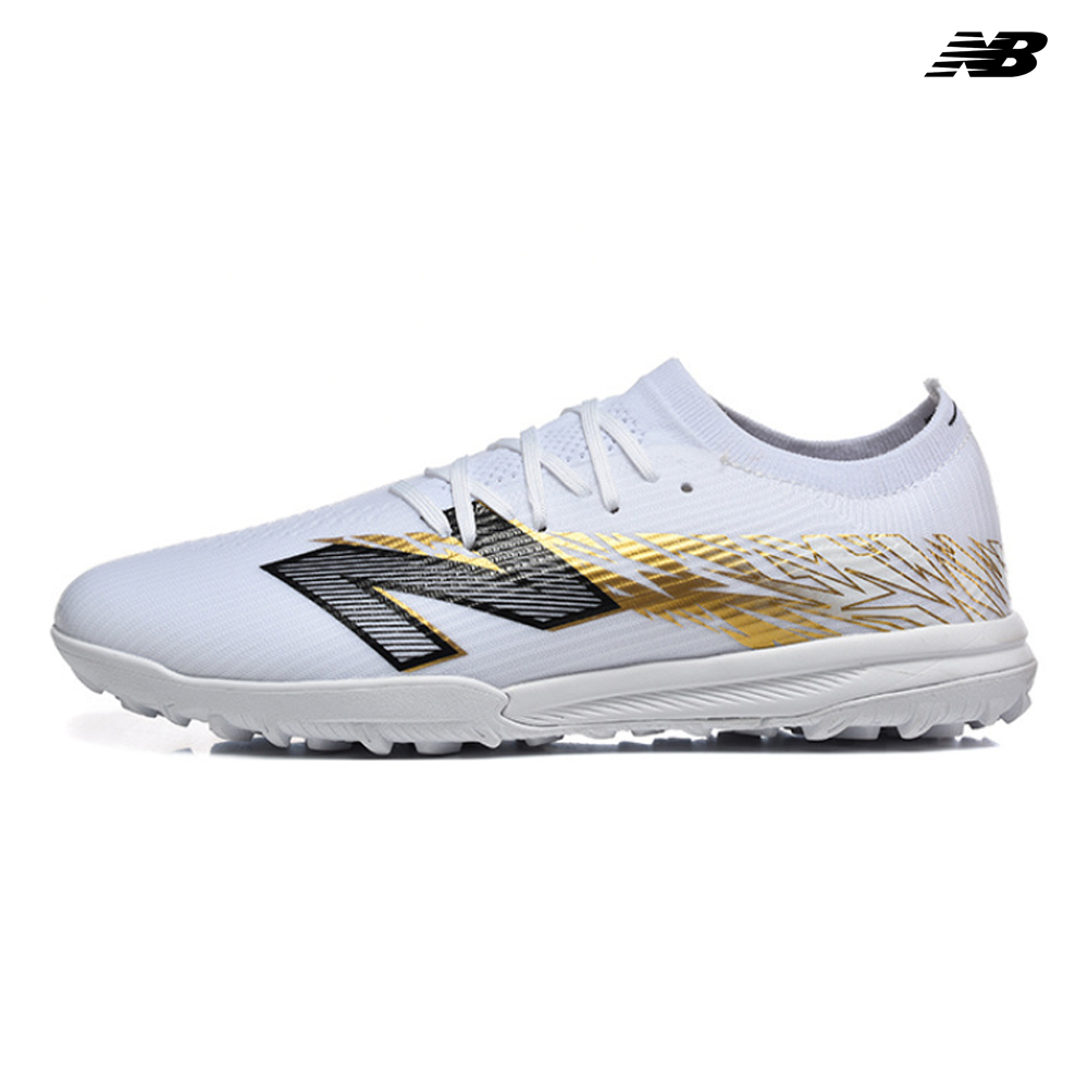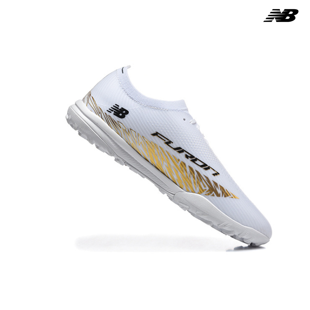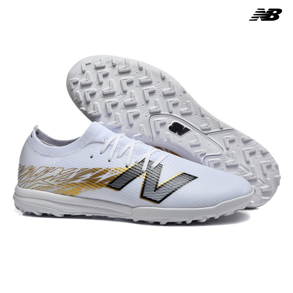 Tem muitos pequenos "bumpers" ou travas de borracha curtas e arredondadas (muito mais do que nas AG/FG, espalhadas densamente pela sola), em vez de travas altas. Isso distribui a pressão uniformemente pelo pé, dá tração boa sem penetrar demais, e oferece amortecimento extra (a sola é muitas vezes de borracha flexível com midsole acolchoado), o que reduz o impacto nas articulações em pisos duros e abrasivos.