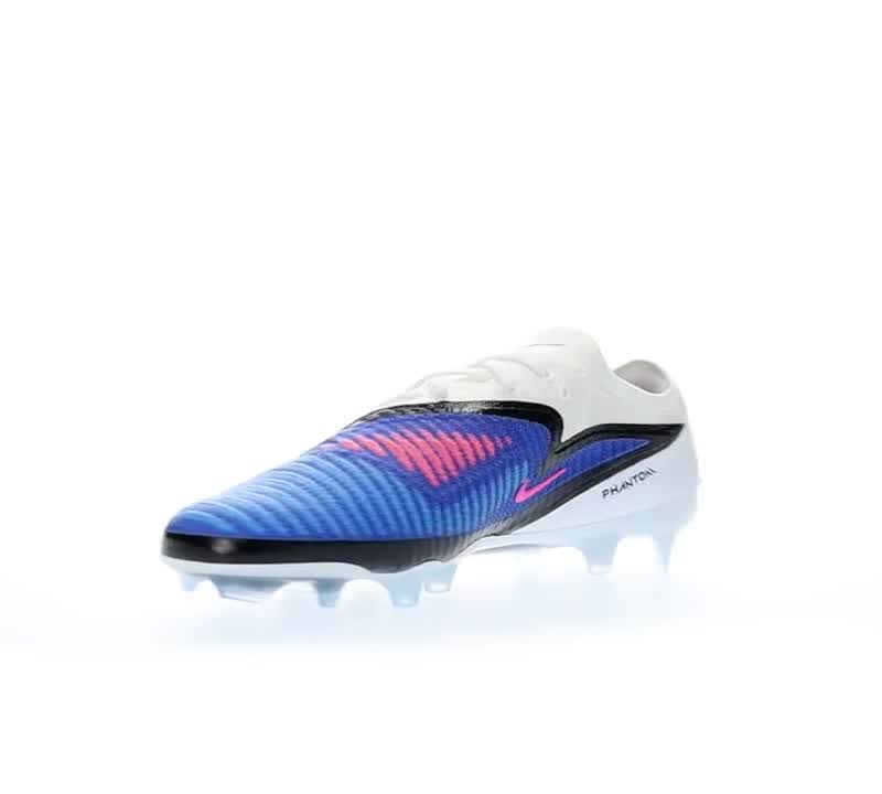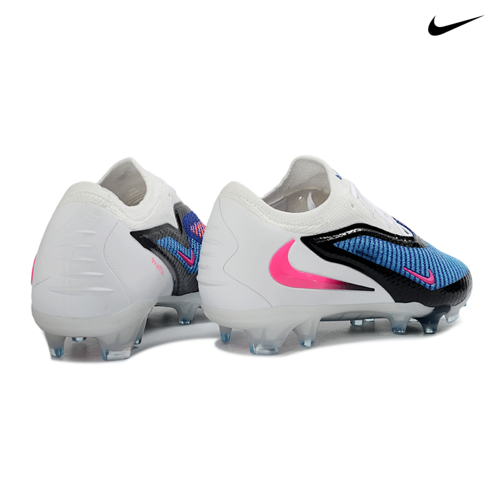 Chuteira de futebol Nike Phantom 6 Low GX III Elite FG para adultos. Chuteira de malha de alta qualidade para jogadores que buscam controle e precisão, na cor Azul Racer com detalhes em Rosa, ideal para uso em campos de relevo natural seco.
