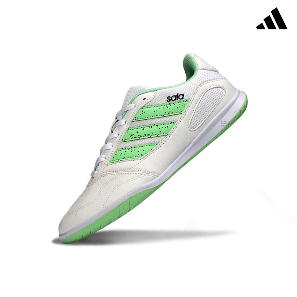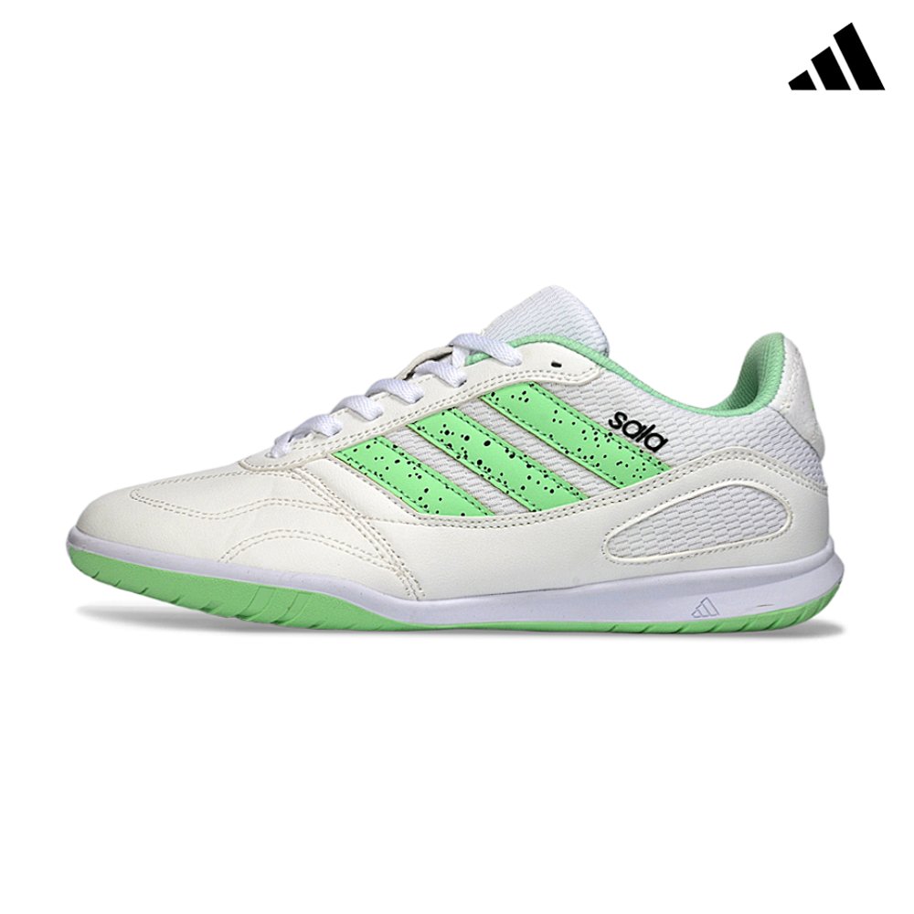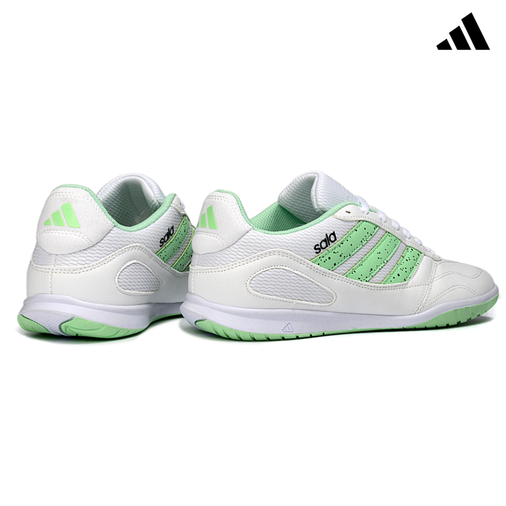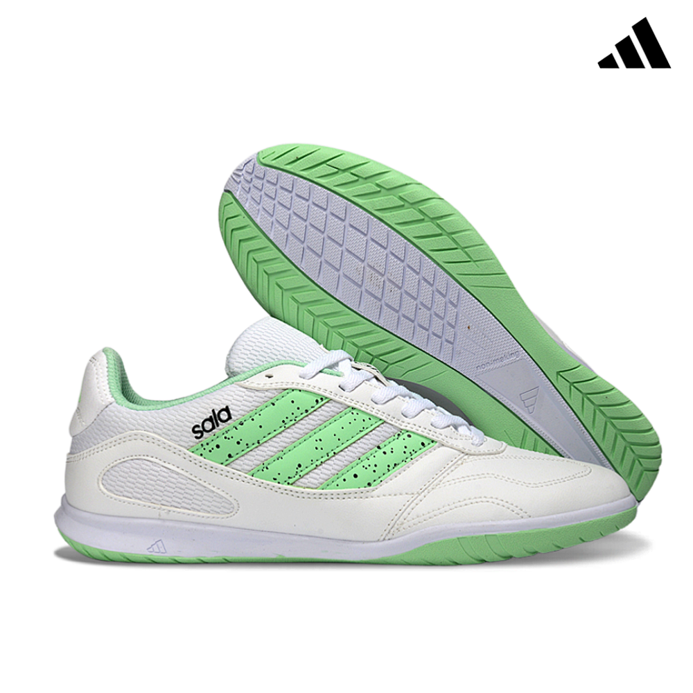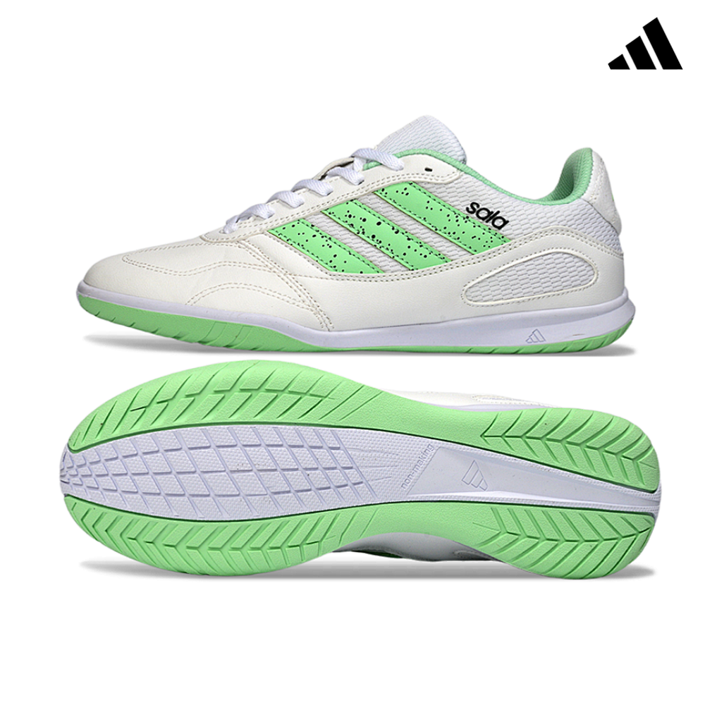 Tem uma sola totalmente plana de borracha ( sem travas ou pitons ), com padrões texturizados ou úmidos ( úmidos ) para máxima aderência e tração em superfícies duras e lisas. É não-marcador ( não arrisca o chão ), o que é obrigatório em muitos pavilhões, e prioriza controle de bola preciso, agilidade rápida, flexibilidade e conforto durante jogos intensos de 5-a-side ou futsal.